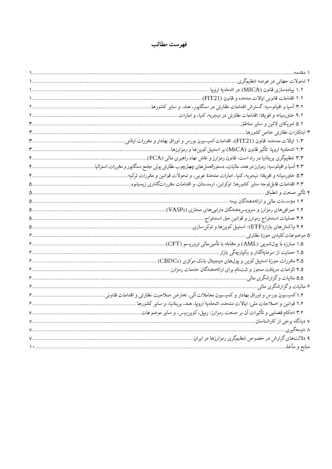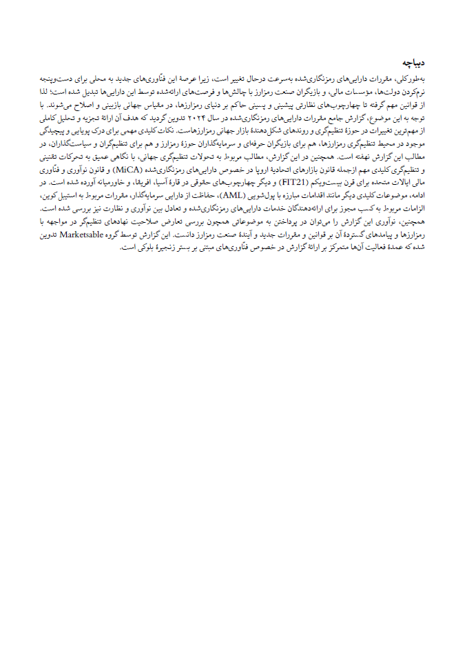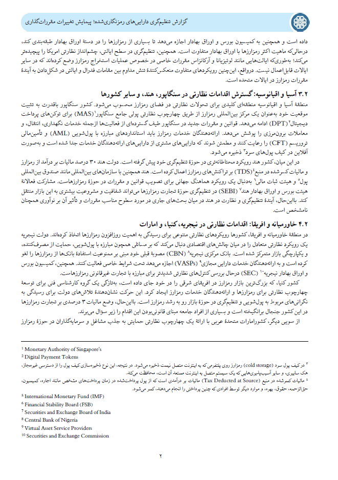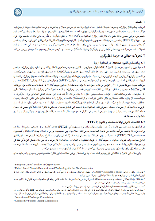 | عنوان | تنظیمگری داراییهای رمزنگاریشده؛ پیمایش تغییرات مقرراتگذاری |