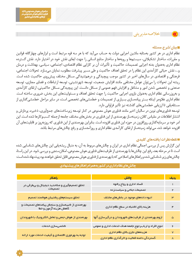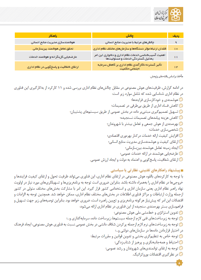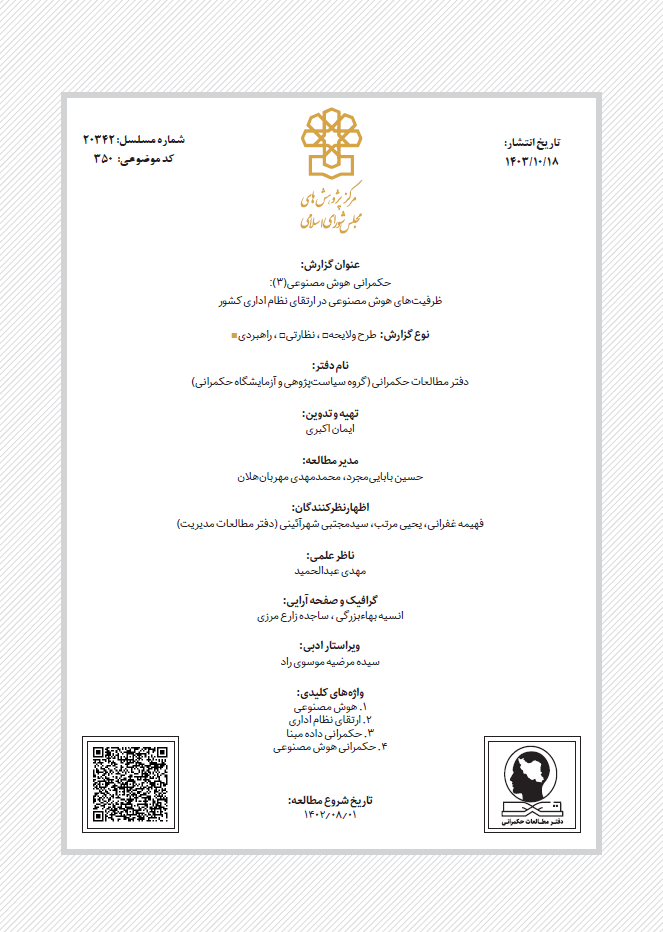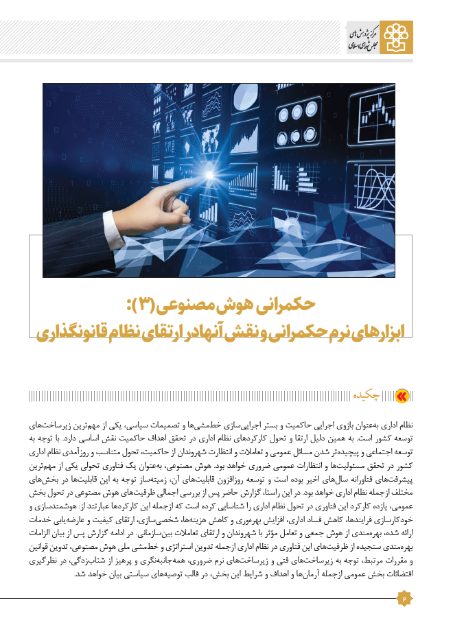 | عنوان | حکمرانی هوش مصنوعی (3): ظرفیت های هوش مصنوعی در ارتقای نظام اداری کشور |