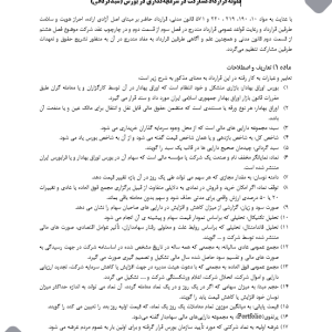 توجه: نمونه قراردادهای موجود با توجه به اینکه بدون توجه به اقتضائات ویژه و مناسبات خاص فیمابین افراد تنظیم شده است لزوما تمامی ریسکهای قراردادی کاربر را پوشش نمیدهد. پیشنهاد ما به شما بهرهگیری از دانش و تخصص یک مشاور حقوقی است تا با عنایت به ملاحظات خاص شما، قرارداد اختصاصی برایتان تنظیم نماید. در این راستا، میتوانید از تخصص وکلا و کارشناسان حقوقی لگاتک در کنار خود استفاده نمایید.