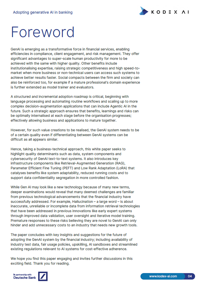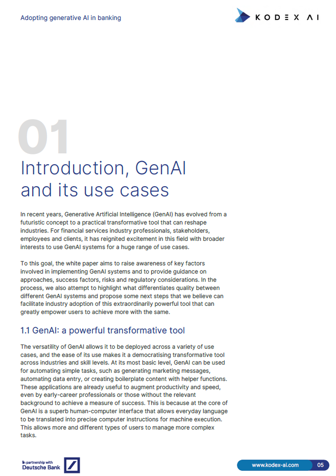 در سالهای اخیر، GenAI از یک مفهوم آیندهنگر به ابزاری عملی و مؤثر برای تحول در صنایع مختلف تبدیل شده است. این فناوری به ویژه در بخش خدمات مالی، با ارائه کاربردهای فراوان و بهبود کارآیی در وظایف روزمره، فرصتهای جدیدی را ایجاد کرده است. این گزارش هدف خود را افزایش آگاهی از چالشها و فرصتهای موجود در پذیرش سیستمهای GenAI در این صنعت قرار داده است.