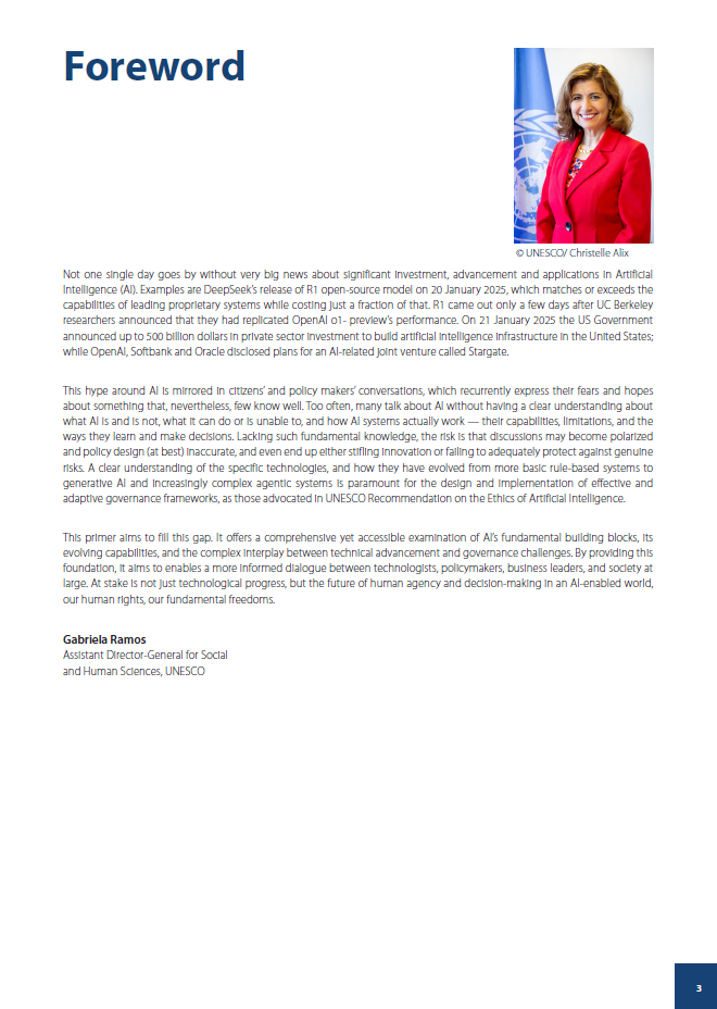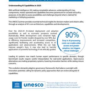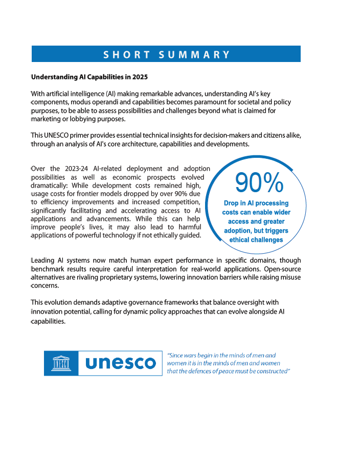گزارش هوش مصنوعی و تکامل قابلیتهای مدل AI: یک مقدمه مفهومی Artificial Intelligence and the Evolution of AI (Model) Capabilities: A Conceptual Primer توسط سازمان آموزشی، علمی و فرهنگی ملل متحد (یونسکو) منتشر شده است. یونسکو بهعنوان یک نهاد بینالمللی، هدف خود را ارتقاء آموزش، علم و فرهنگ در سطح جهانی قرار داده و در تلاش است تا با ارائه اطلاعات دقیق و جامع، به سیاستگذاران و عموم مردم کمک کند تا درک بهتری از موضوعات پیچیدهای مانند هوش مصنوعی داشته باشند.