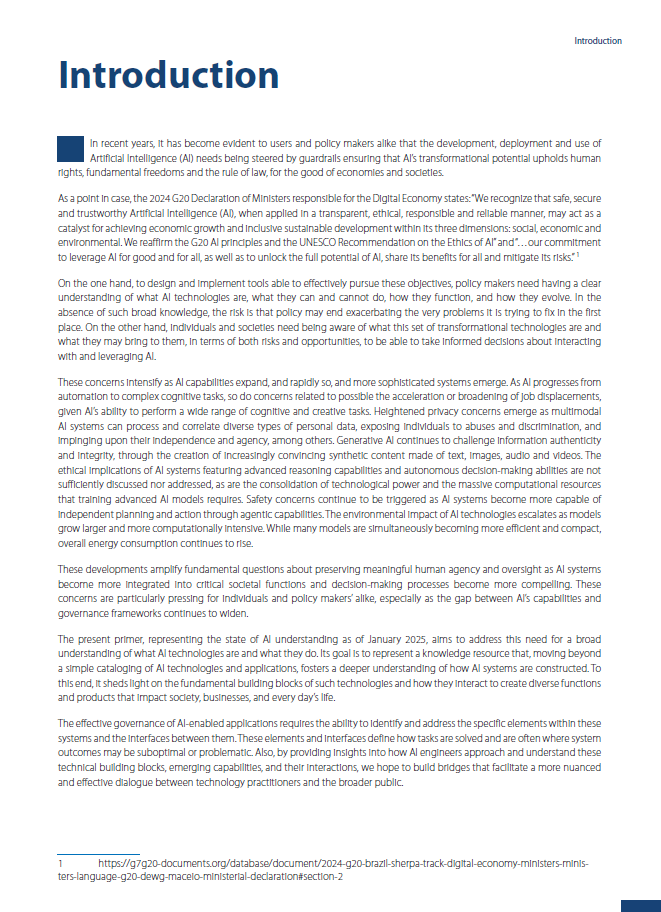 گزارش هوش مصنوعی و تکامل قابلیتهای مدل AI: یک مقدمه مفهومی Artificial Intelligence and the Evolution of AI (Model) Capabilities: A Conceptual Primer بهعنوان یک منبع آموزشی مهم، به تحلیل عمیق تحولات اخیر در حوزه AI و چالشهای حاکمیتی آن میپردازد. این گزارش به سیاستگذاران، تکنولوژیستها و عموم مردم کمک میکند تا درک بهتری از AI و تأثیرات آن بر جامعه داشته باشند. با توجه به تحولات سریع در این حوزه، درک عمیقتر از قابلیتها و محدودیتهای AI به شدت ضروری است.
