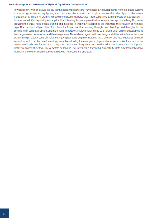 در نهایت، گزارش هوش مصنوعی و تکامل قابلیتهای مدل AI: یک مقدمه مفهومی Artificial Intelligence and the Evolution of AI (Model) Capabilities: A Conceptual Primer میتواند بهعنوان یک راهنما برای درک بهتر از “هوش مصنوعی و تکامل قابلیتهای مدل AI” مورد استفاده قرار گیرد و به تسهیل گفتوگوهای آگاهانه و مؤثر در این زمینه کمک کند.