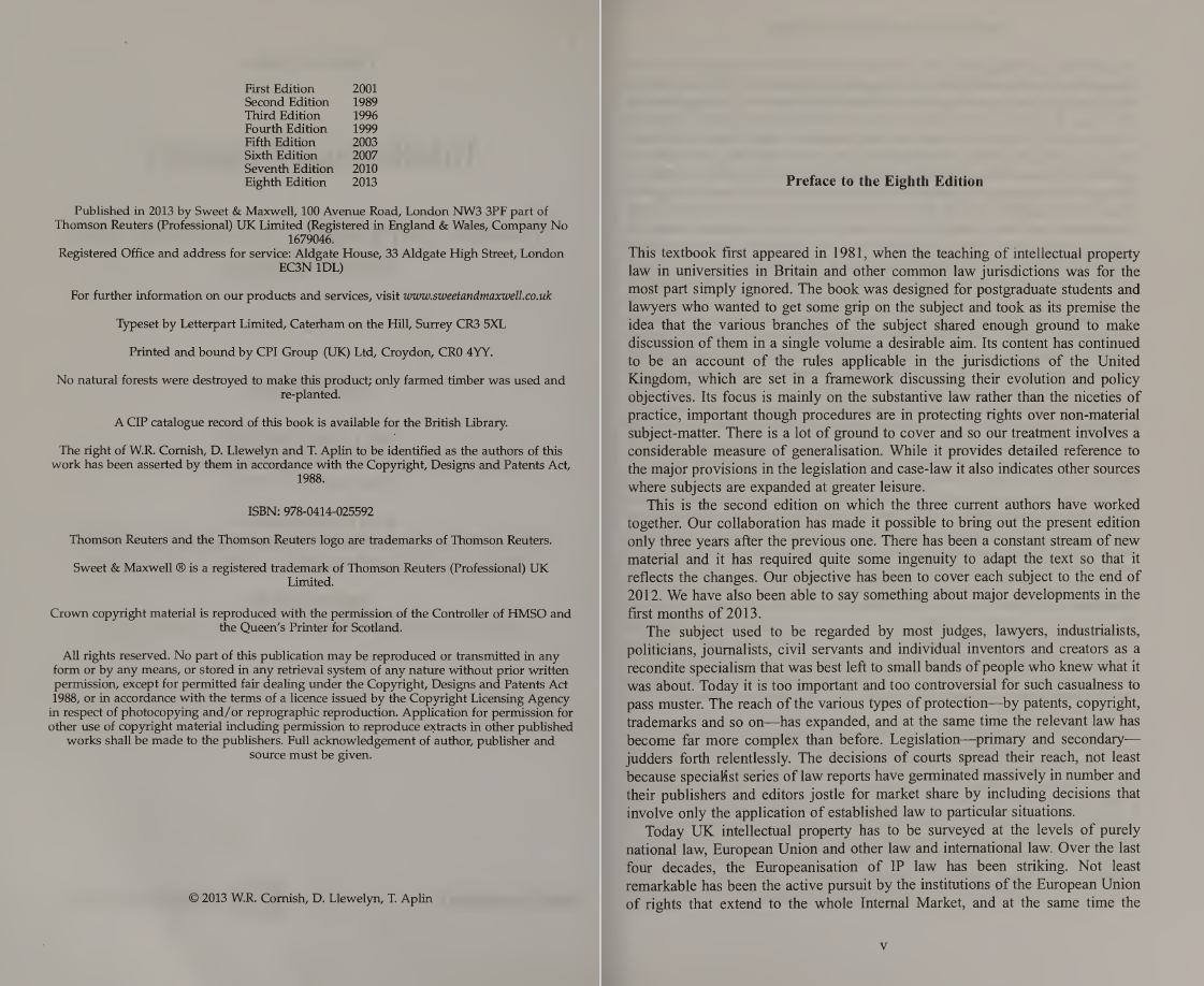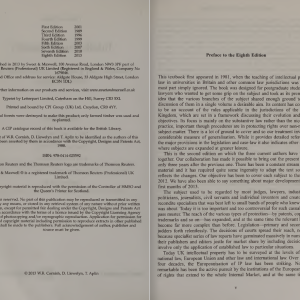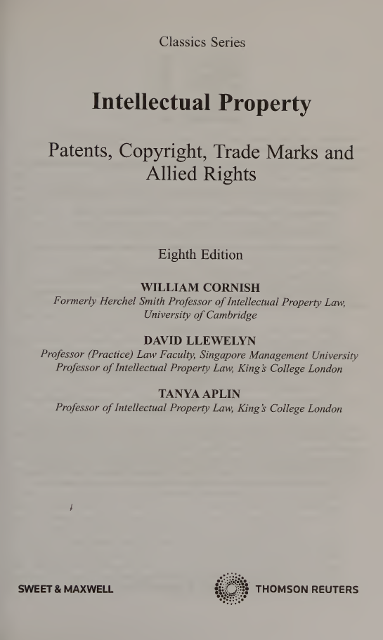 کتاب حقوق مالکیت فکری (Intellectual Property Law) نوشته W.R. Cornish، D. Llewelyn و T. Aplin، یکی از منابع معتبر و جامع در زمینه حقوق مالکیت فکری در بریتانیا است. این کتاب توسط موسسه Sweet & Maxwell منتشر شده و به بررسی قوانین و مقررات مربوط به مالکیت فکری میپردازد. این اثر بهویژه برای دانشجویان تحصیلات تکمیلی و وکلا طراحی شده است که به دنبال درک عمیقتری از این حوزه هستند.