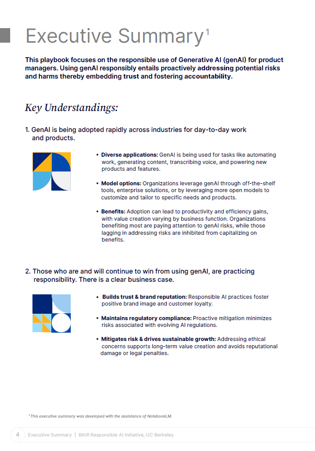 این گزارش به عنوان یک راهنما برای رهبران سازمانی و مدیران محصول در راستای استفاده مسئولانه از هوش مصنوعی عمل می‌کند و به آن‌ها کمک می‌کند تا در این عصر نوین فناوری، به مسئولیت‌پذیری و اخلاق در تصمیم‌گیری‌های خود توجه بیشتری داشته باشند.