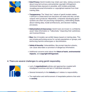 گزارش به چالش‌های مختلفی که سازمان‌ها در استفاده از هوش مصنوعی با آن‌ها مواجه هستند، اشاره می‌کند. این چالش‌ها شامل: