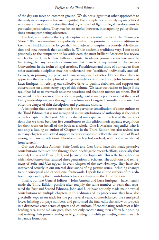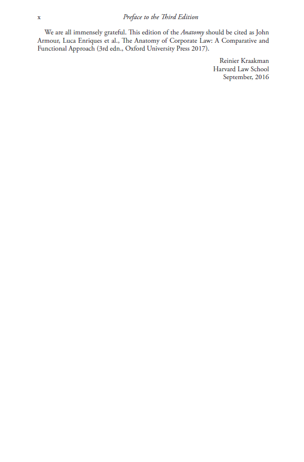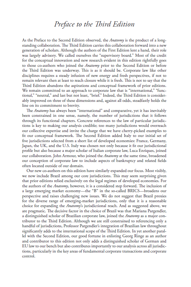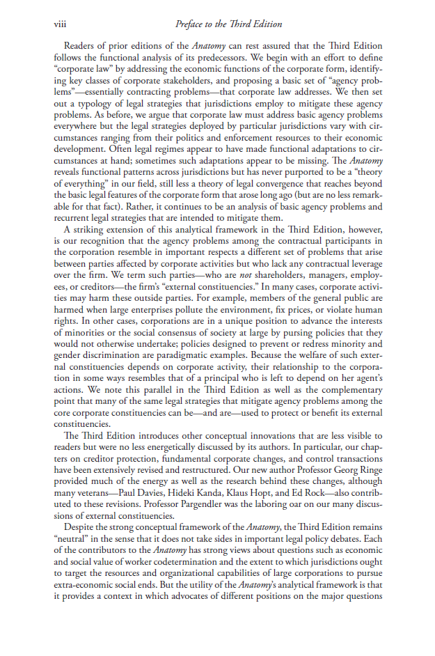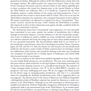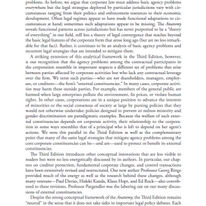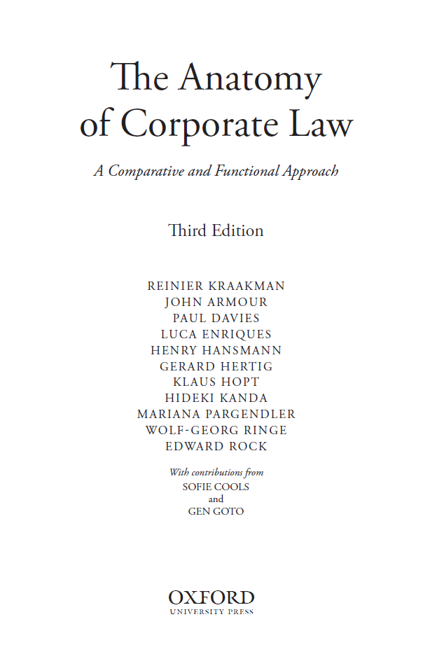 کتاب The Anatomy of Corporate Law: A Comparative and Functional Approach شامل ده فصل است که هر یک به بررسی جنبههای خاصی از حقوق شرکتی میپردازد. فصول کتاب به شرح زیر است: